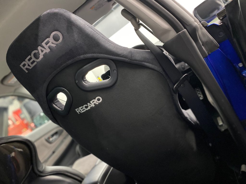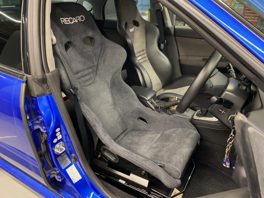 純正RECARO(SP-Xベース)を長年愛用いただき、今回メンテナンスも兼ねフルバケットタイプを装着させていただきました。モデルは室内のイメージにピッタリなアルカンターラモデルを選択。もちろん見た目だけでなく耐久性、耐光性も兼ねておりより長い年月でご愛用いただけます。