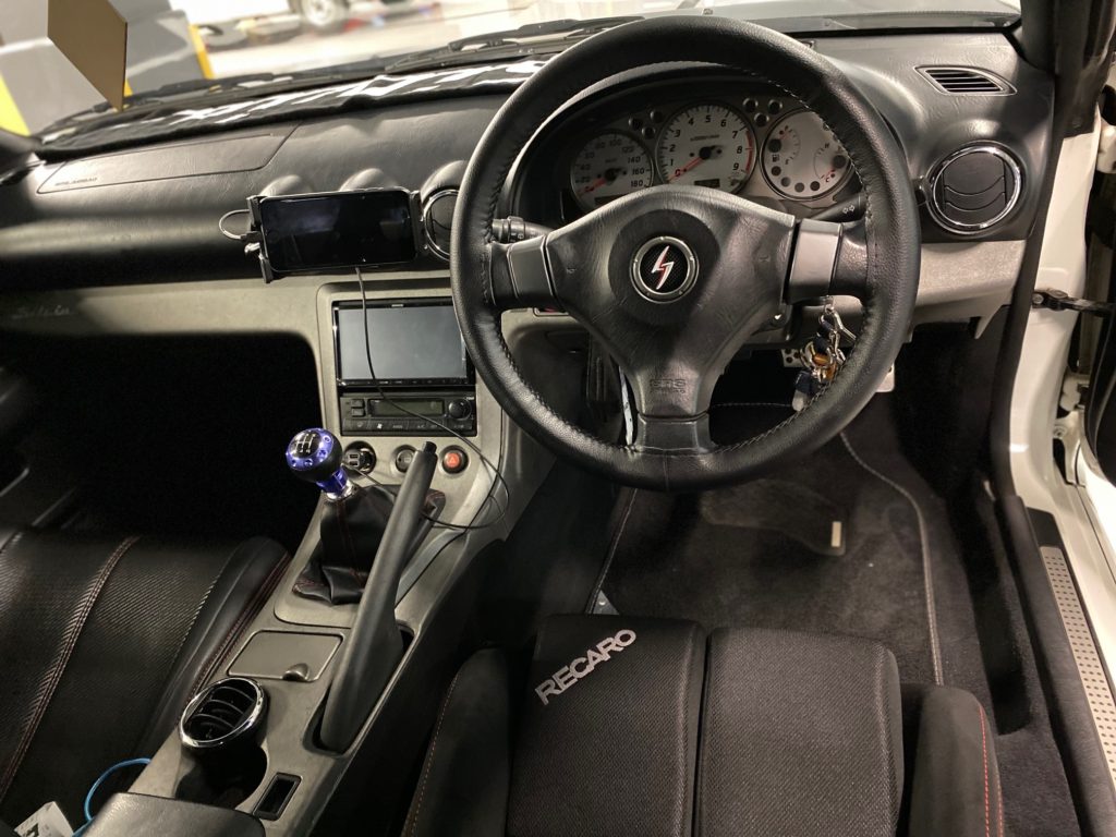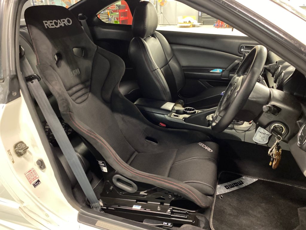今回はシートがRS-Gのため、リメイクされたRS-G専用ウルトラローポジションレールにて取付。以前のウルトラローポジションレールよりさらに剛性感の高いレールになっており、かなりおススメのベースフレームです。またレバーも変則型レバーから一般的な内レバーになり使い勝手も良くなり着座位置も最大で30mm以上ダウンします。