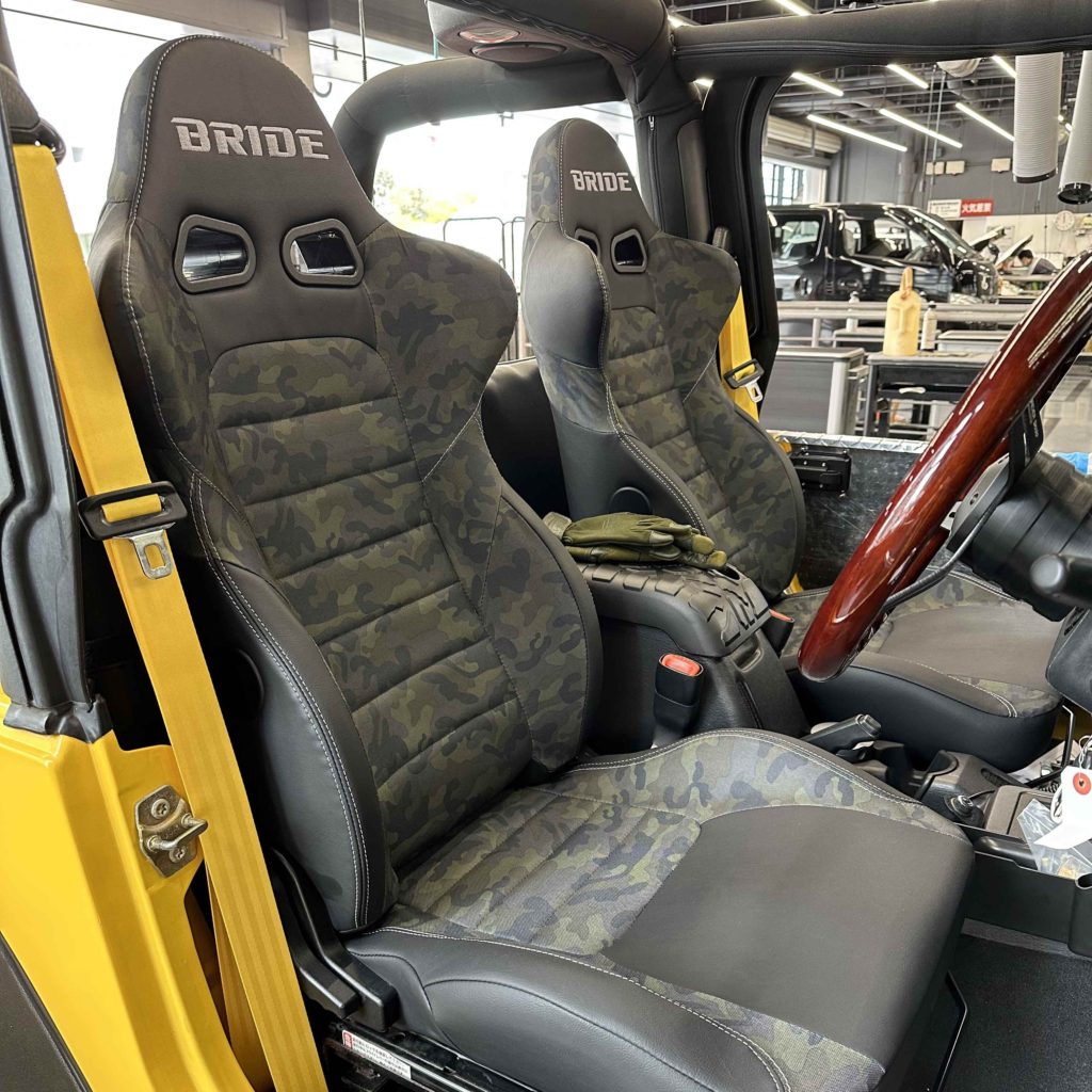 ラングラーに新商品のBRIDE EUROGHT グリーンカモフラを装着させていただきました。