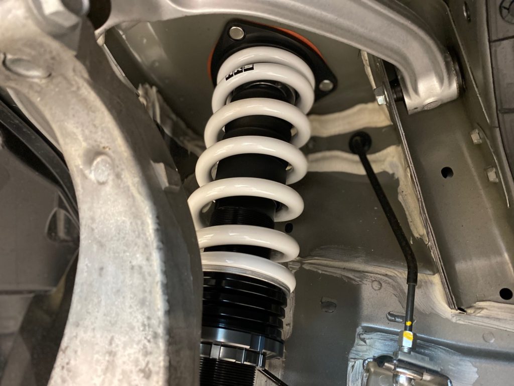 ダンパーからスプリングに至るまで全てを内製でとりまとめるならではのクオリティ。取付に関してはお客様との打ち合わせ通り、ローダウンも推奨基準にてセット。