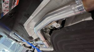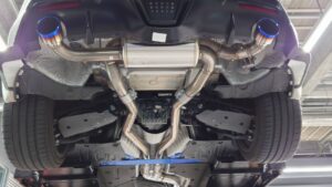 スーパーターボマフラーでは常用回転域のこもり音を抑えながらも心地よいスポーツサウンドを両立し、純正よりもこだわった形状によってパワー感も大きく感じられます。