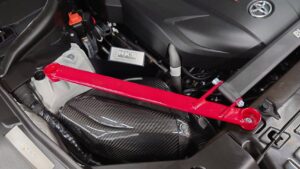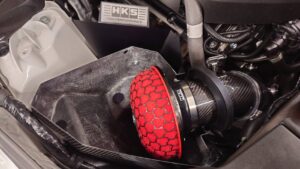 またカーボン製のインテークボックスと高性能のレーシングサクションとの組み合わせはエンジンルームに圧倒的な高級感を与えます。