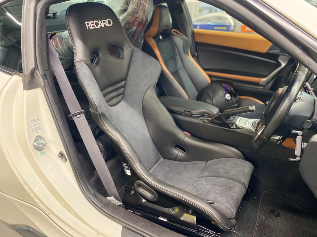 RS-G のハイエンドモデル、レザー×アルカンターラを纏った『RS-G CL』を86に装着させていただきました。装着後の圧倒的な美観だけではなく、異素材を組み合わせたこのシートはもはや芸術の域に達します。 もちろん見た目だけでなく、運転時にはレザーで摩擦が少ないため乗り降りしやすく、座った際はセンターのアルカンターラによりしっかり姿勢維持を継続してくれます。