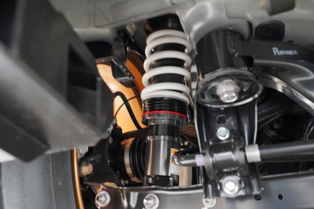 今後のサーキット走行を見据えてのHKS製HIPERMAX-Rも併せて装着させていただきました。走り心地を楽しめる足に、その挙動をリニアに感じることの出来るシート。