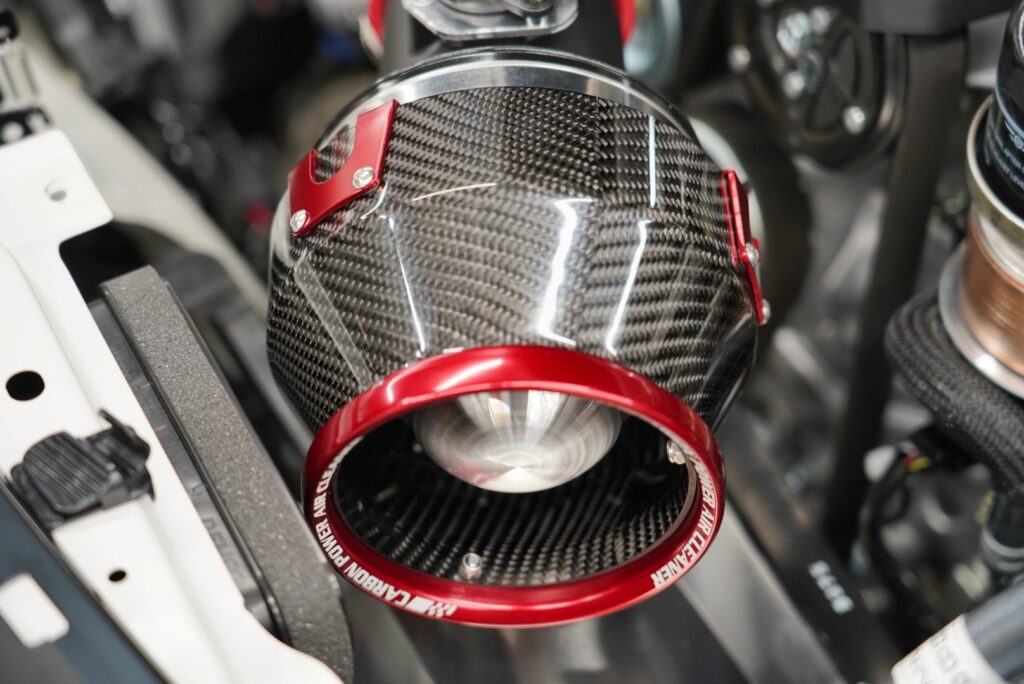 カーボンのインテークが入ることでエンジンルームが一気にレーシーな雰囲気となりました。