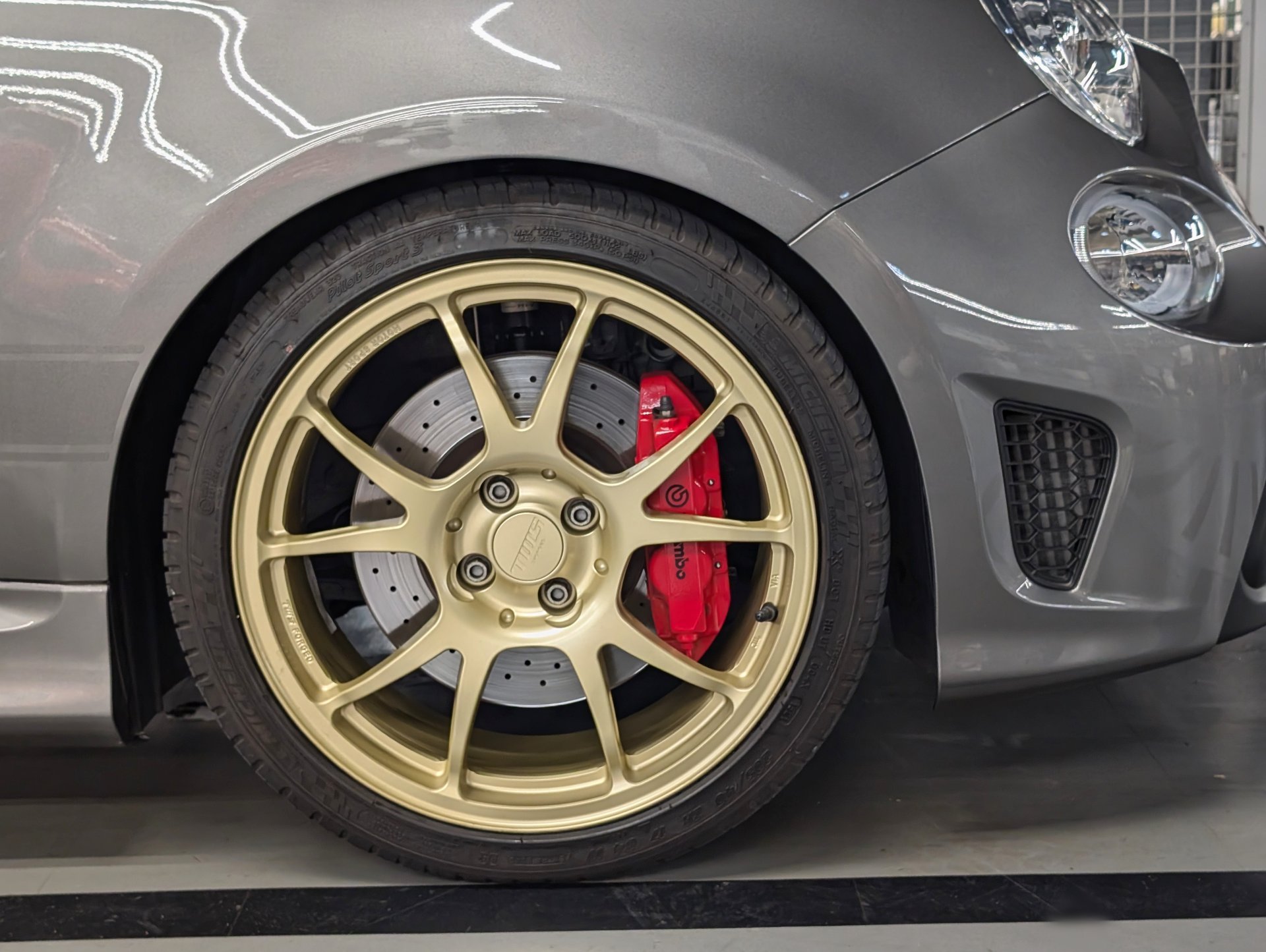 APIT東雲です。ABARTH595にASSO GRU ビッグローターキットを取り付けました。7本ス...