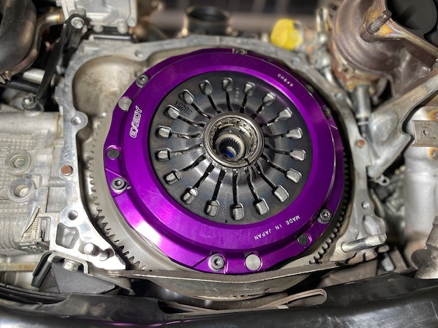 APIT東雲店です。WRX STI VAB クラッチ交換です。外した純正品のディスクの減り状態はギ...