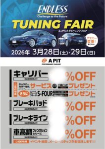 OTHER EVENTSその他イベント新着情報 2026/03/28 - 2026/03/29 TEIN 体感 LIVE 開催 PERFORMANCE GARAGE東福岡 コーナーイベント APIT PERFORMANCE GARAGE東福岡BRZTEIN 2026/03/14 - 2026/03/15 KW車高調体感FAIR PERFORMANCE GARAGE東福岡 コーナーイベント APIT PERFORMANCE GARAGE東福岡KWカーヴェー 2026/02/05 - 2026/12/31 PERFORMANCE GARAGE東福岡 イベントスケジ... PERFORMANCE GARAGE東福岡 コーナーイベント APIT PERFORMANCE GARAGE東福岡イベント VIEW MORE