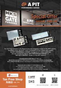 “HKS GATE FUKUOKA” sticker at the APIT counter!