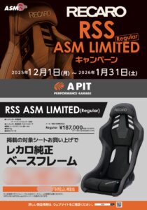 12月1〜1月31日までの期間中、掲載の対象シート RSS ASM LTD Regularお買い上げでレカロ純正