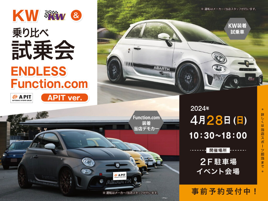 当店オリジナルのエッセンスが入ったエンドレス製ファンクションダンパーとKWの乗り比べ試乗会を行います。