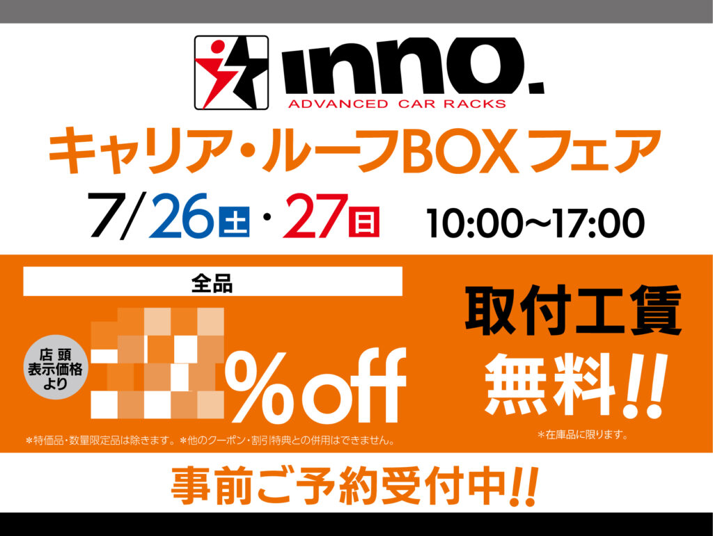 7月26日(土)、27日(日)INNOキャリア・ルーフBOXフェアを開催致します。