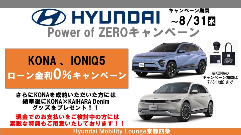 各種特典をご用意しておりますので詳しくはメーカーキャンペーンサイトをご覧ください。https://www.hyundai.com/jp/brand/events-JP1PEM00000000000558