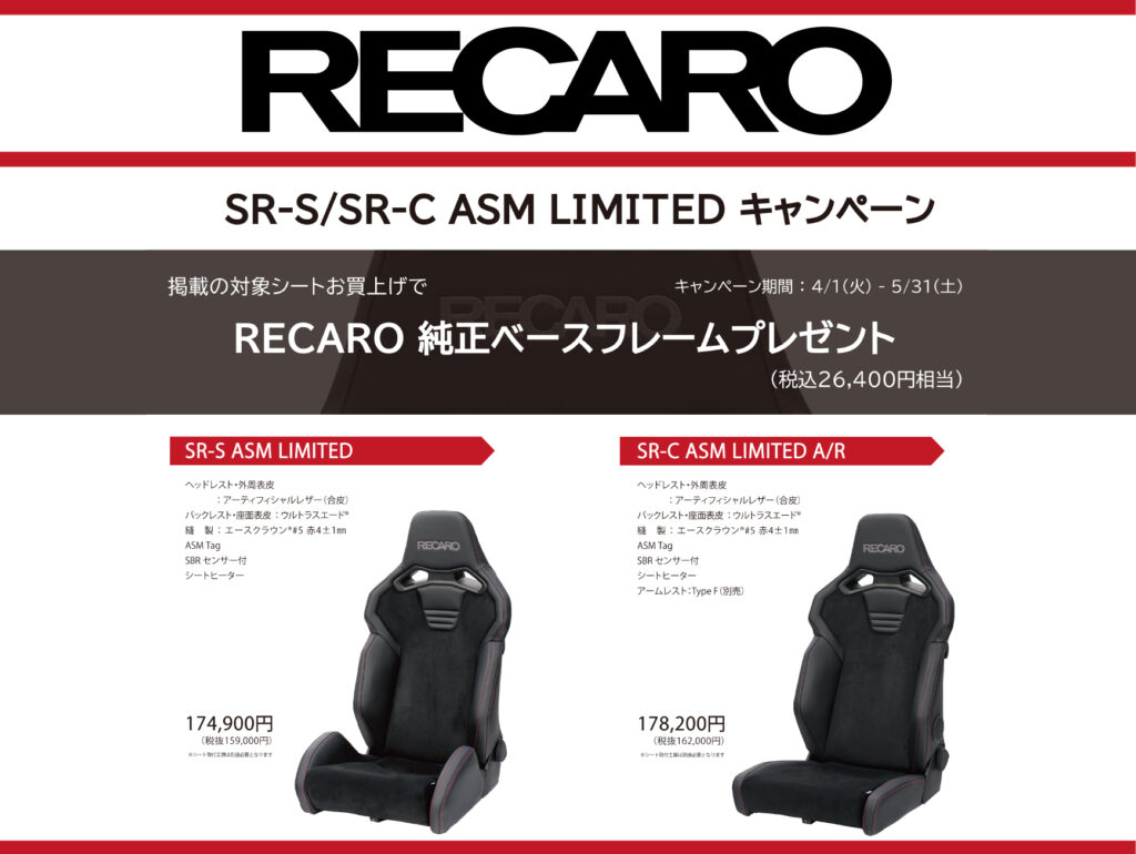 4/1~5/31までの期間、当店舗にて対象シートをお買い上げのお客様に限りRECARO製ベースフレームのキャンペーンを行います。