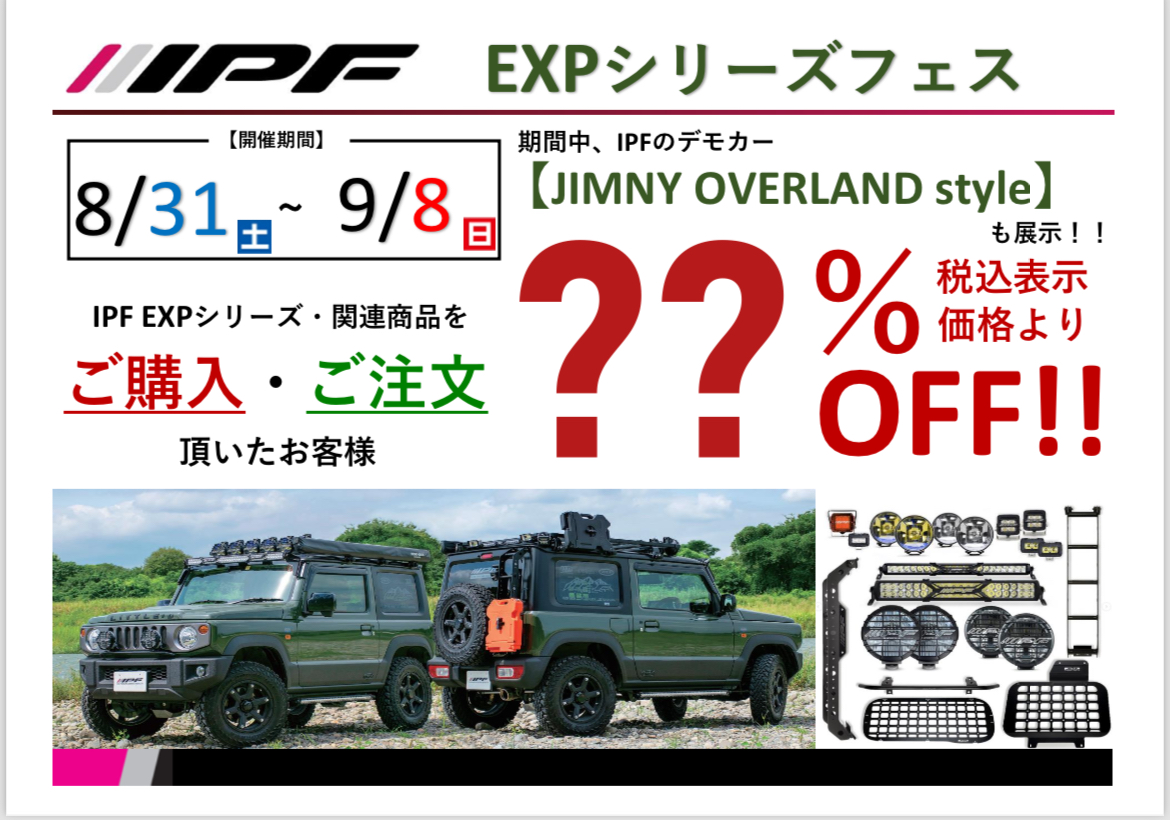 期間:8/31~9/8まで IPFデモカー:JIMNY OVERRAND style 展示!!
