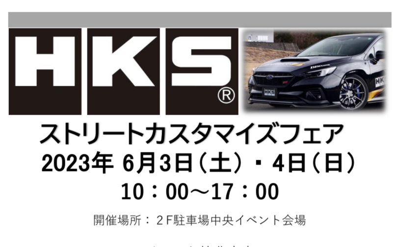 場所:2Fスポーツイベント会場 時間:10:00-17:00 ☆最新のHKSチューニングパーツを...