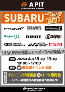 OTHER EVENTSその他イベント新着情報 2026/04/04 - 2026/04/05 BLITZ GRフェア開催 BLITZ GRフェア開催 コーナーイベント BLITZGRMGゴーストマフラーレーダー車高調 2026/04/18 - 2026/04/19 オカダプロジェクツフェア開催 オカダプロジェクツフェア開催 店舗イベント オカダプロジェクツプラズマダイレクト 2026/04/18 - 2026/04/19 BRIDEフェア開催 BRIDEフェア開催 店舗イベント BRIDEスポーツシートブリッド VIEW MORE
