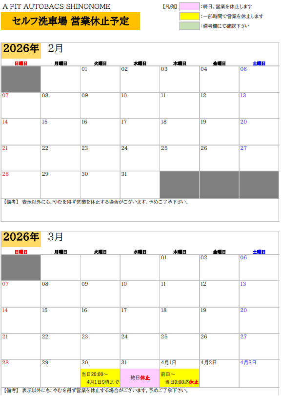 2026/02/02 2月度【 PERFORMANCE FACTORY】営業日のご... 2月度【 PERFORMANCE FACTORY】営業日のご案内 ※お知らせ※ PERFORMANCE FACTORY PERFORMANCE FACTORY