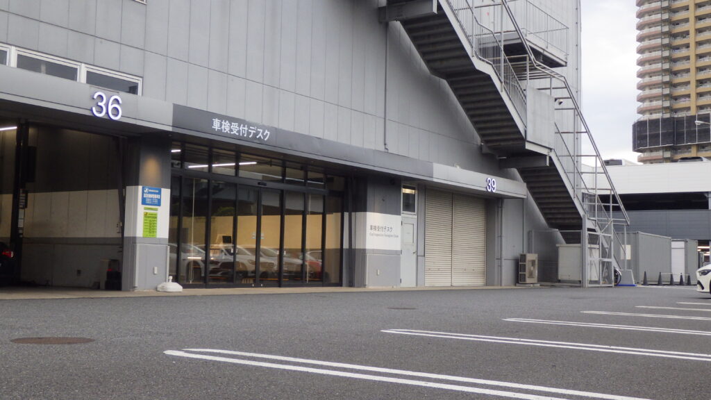 車検受付カウンターの正面にある駐車スペースへお停めください。