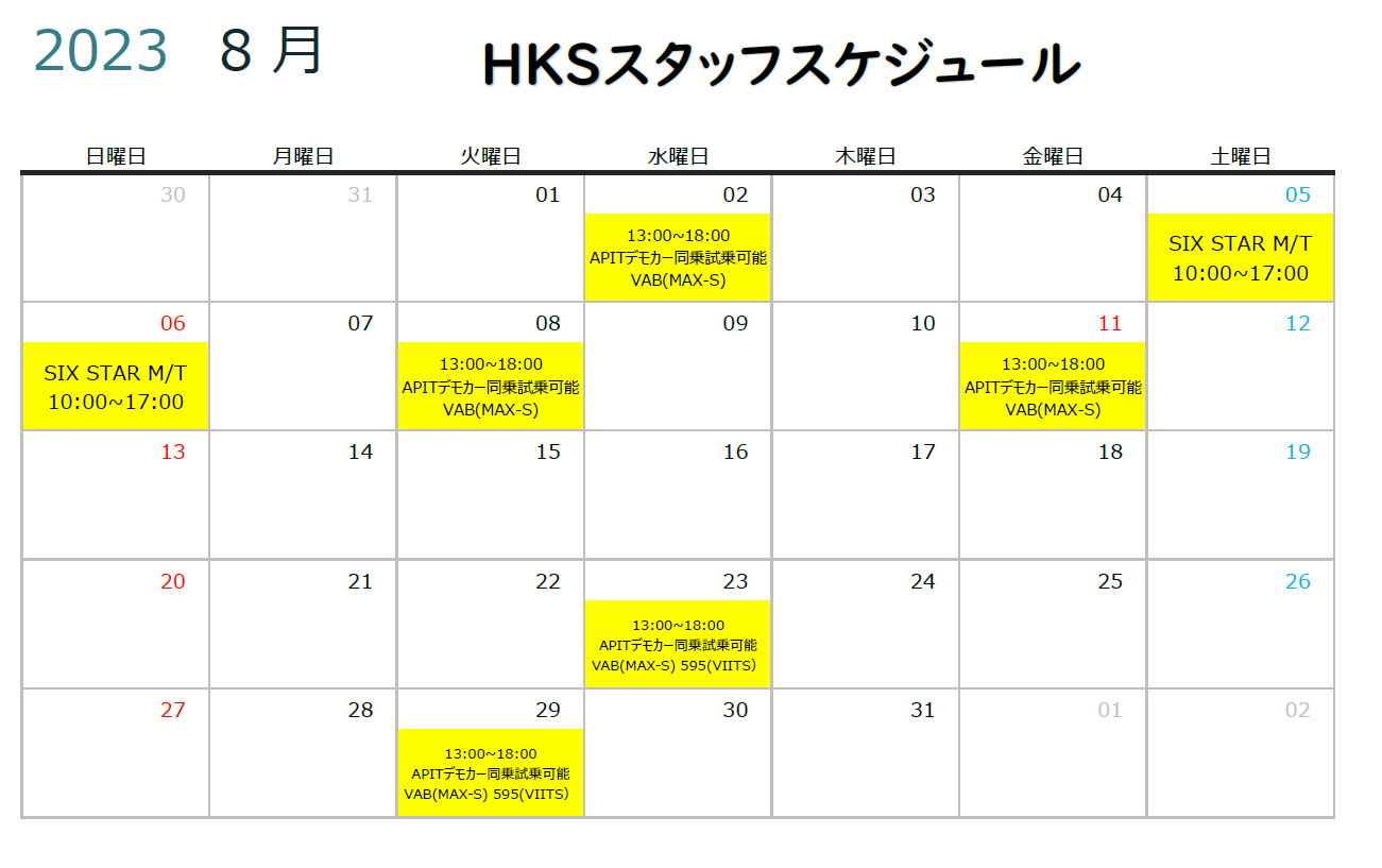 HKS GATE TOKYO BAY でのHKSスタッフ在店スケジュールのご案内です。 詳しくはス...