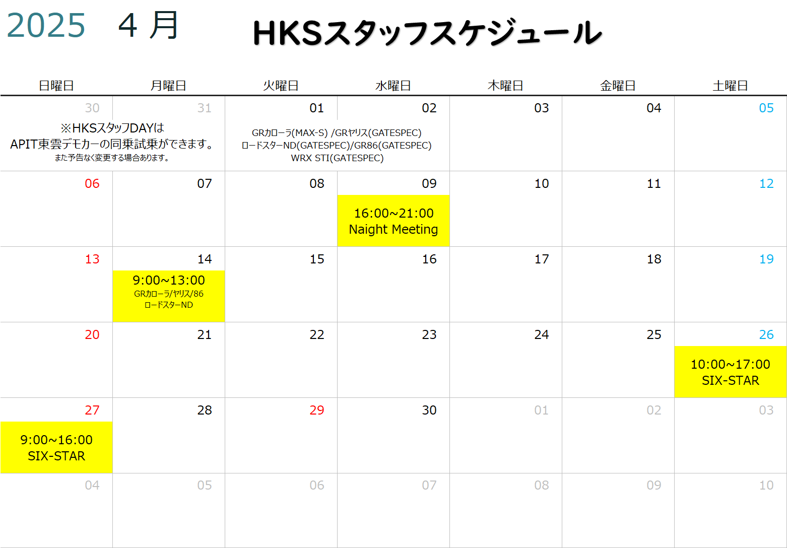 2025/11/29 【HKS GATE TOKYO BAY】 12月度HKSスタ... HKS GATE TOKYO BAY でのHKSスタッフ在店スケジュールのご案内です。 詳しくはス... フェア 東雲店 HKSHKS GATE