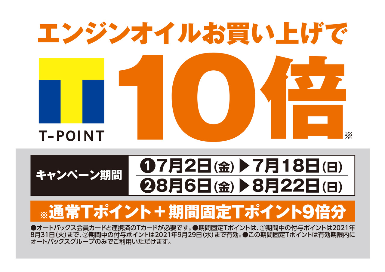 期間中にエンジンオイルをご購入頂くと、通常のTポイントとは別に、