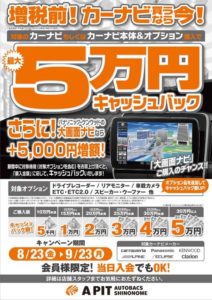 増税前カーナビキャッシュバックキャンペーンを開催いたします!