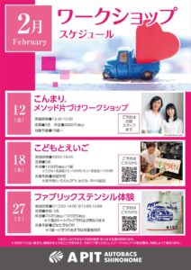 2月のワークショップ開催スケジュールは以下の通りです。