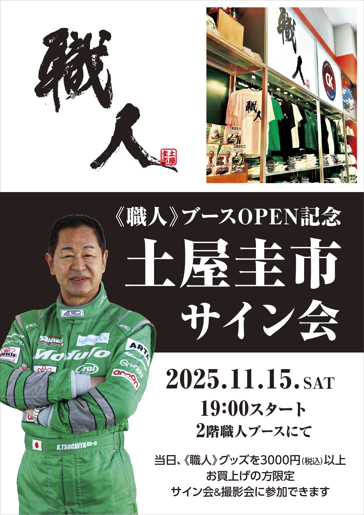 A new official merchandise booth for Keiichi Tsuchiya, the “Drift King,” has opened at APIT Shinonome!