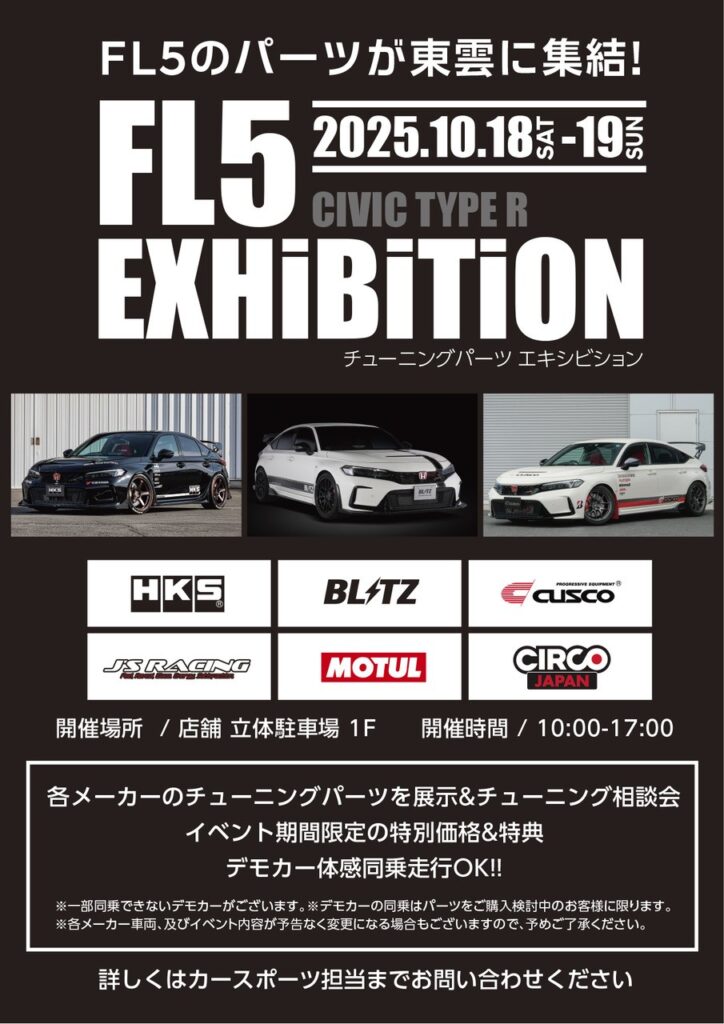 APIT東雲 “FL5チューニングパーツエキシビジョン”を開催いたします。