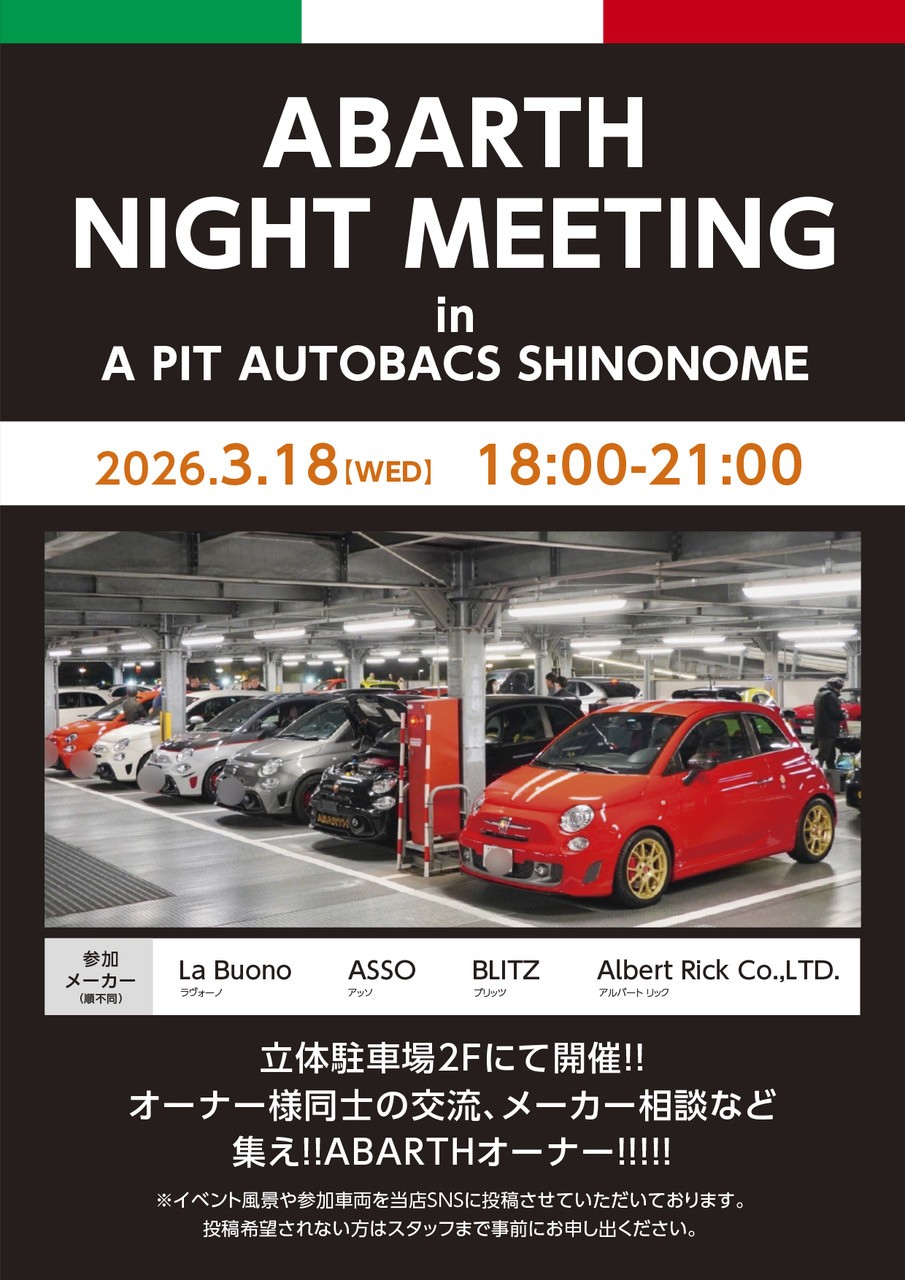 3月のABARTHナイトミーティング開催情報