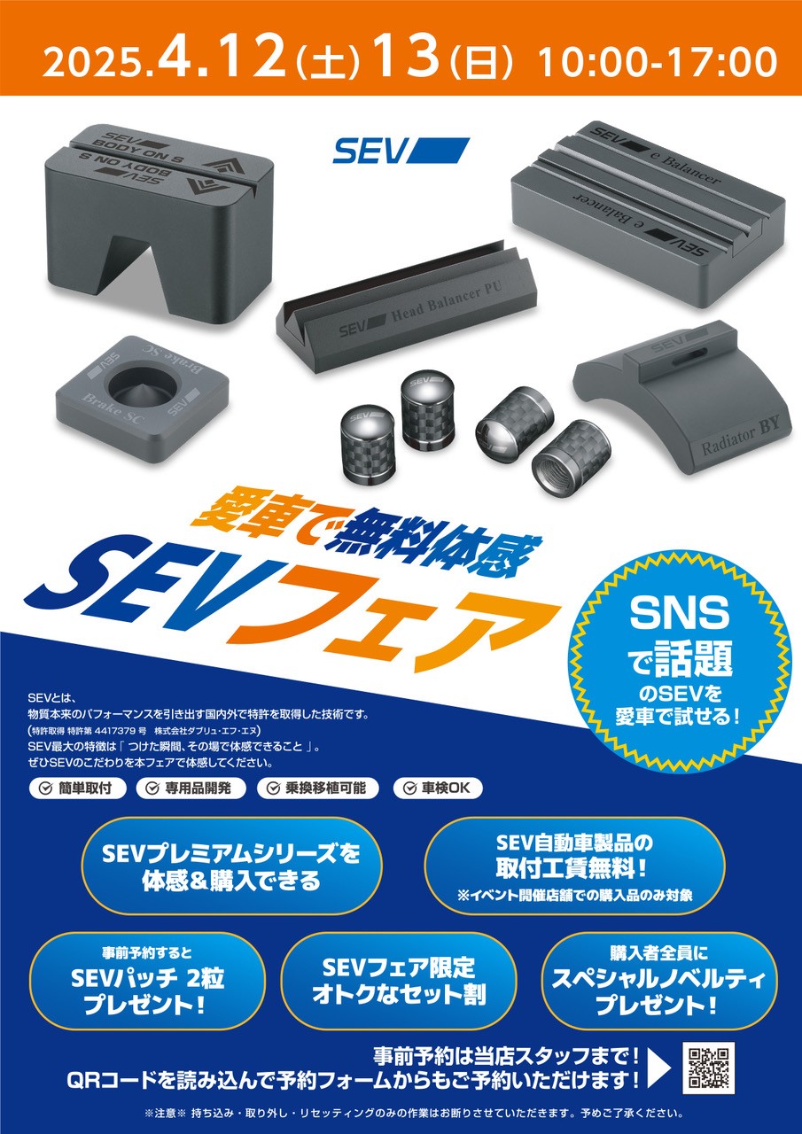 当日はSEVの各種商品を愛車へ試し付け・試乗が出来ます!