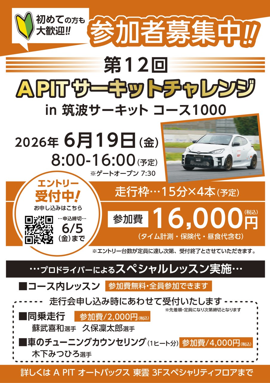 また、プロドライバーによる同乗走行レッスン(別途¥2,000税込~)も実施いたします!