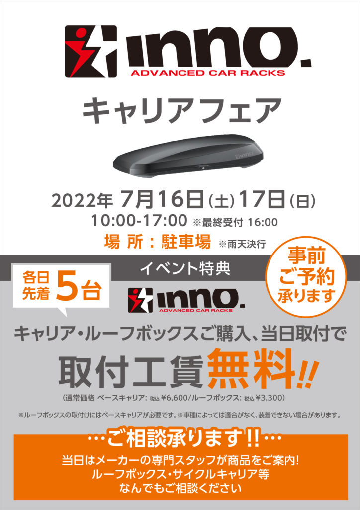 ・特典:各日先着5台キャリア、ルーフボックスご購入及び当日取付のお客様にお得な特典でご案内します!
