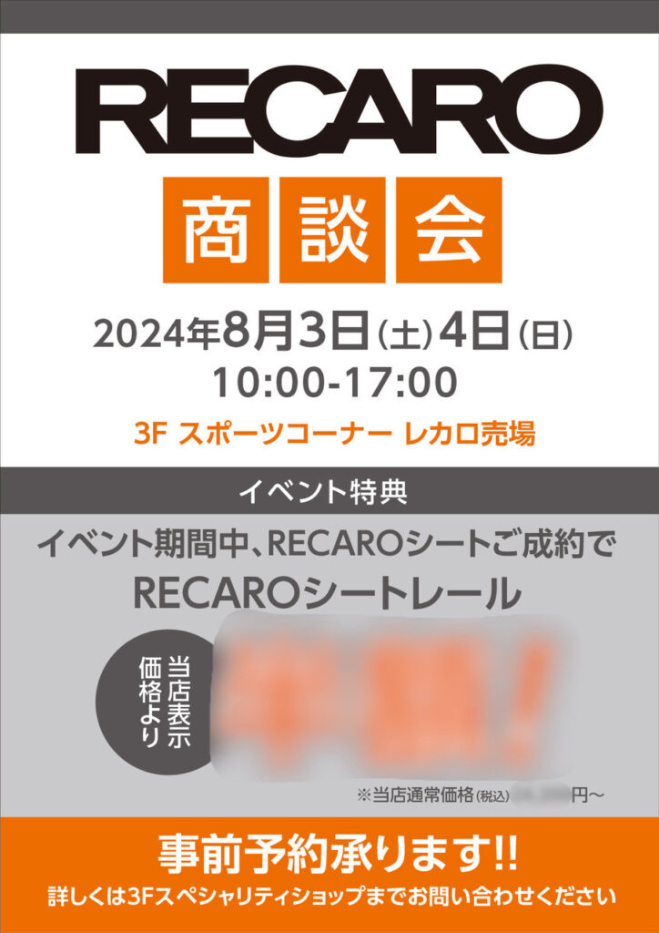 8月3日(土)4日(日)は APIT東雲RECARO商談会を開催します。