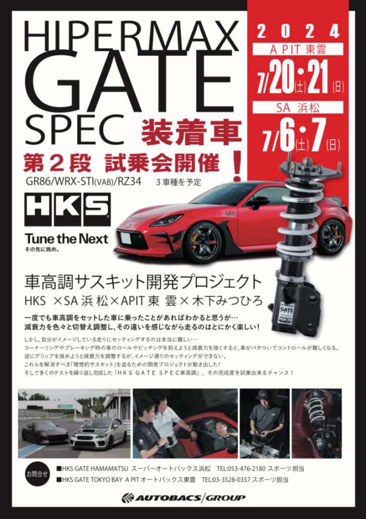 大好評のHKS HIPERMAX GATESPECの試乗会 開催決定しました
