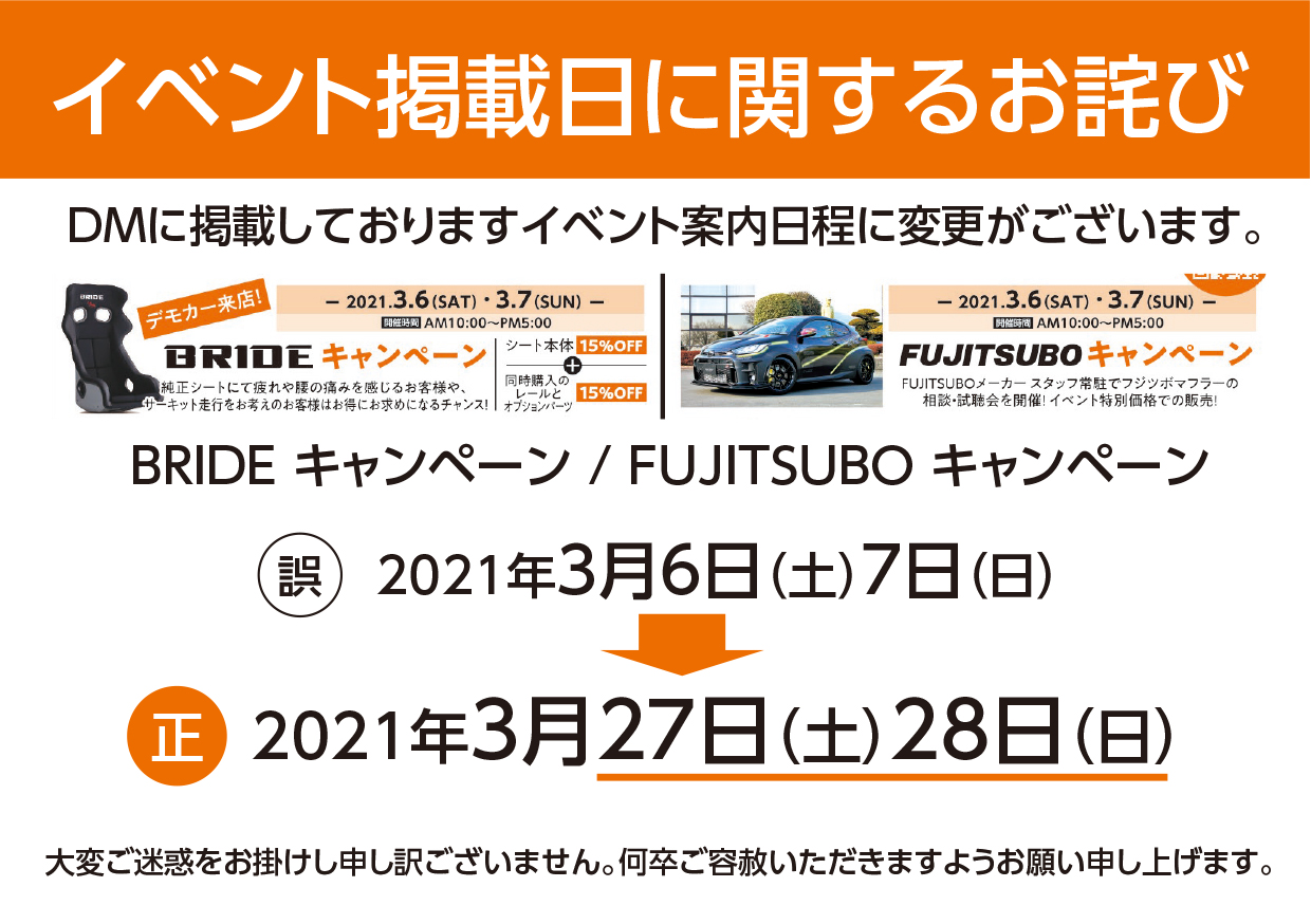 3月27日(土)・28日(日)4メーカ―合同イベント開催! ※イベント日程について 一部のお...