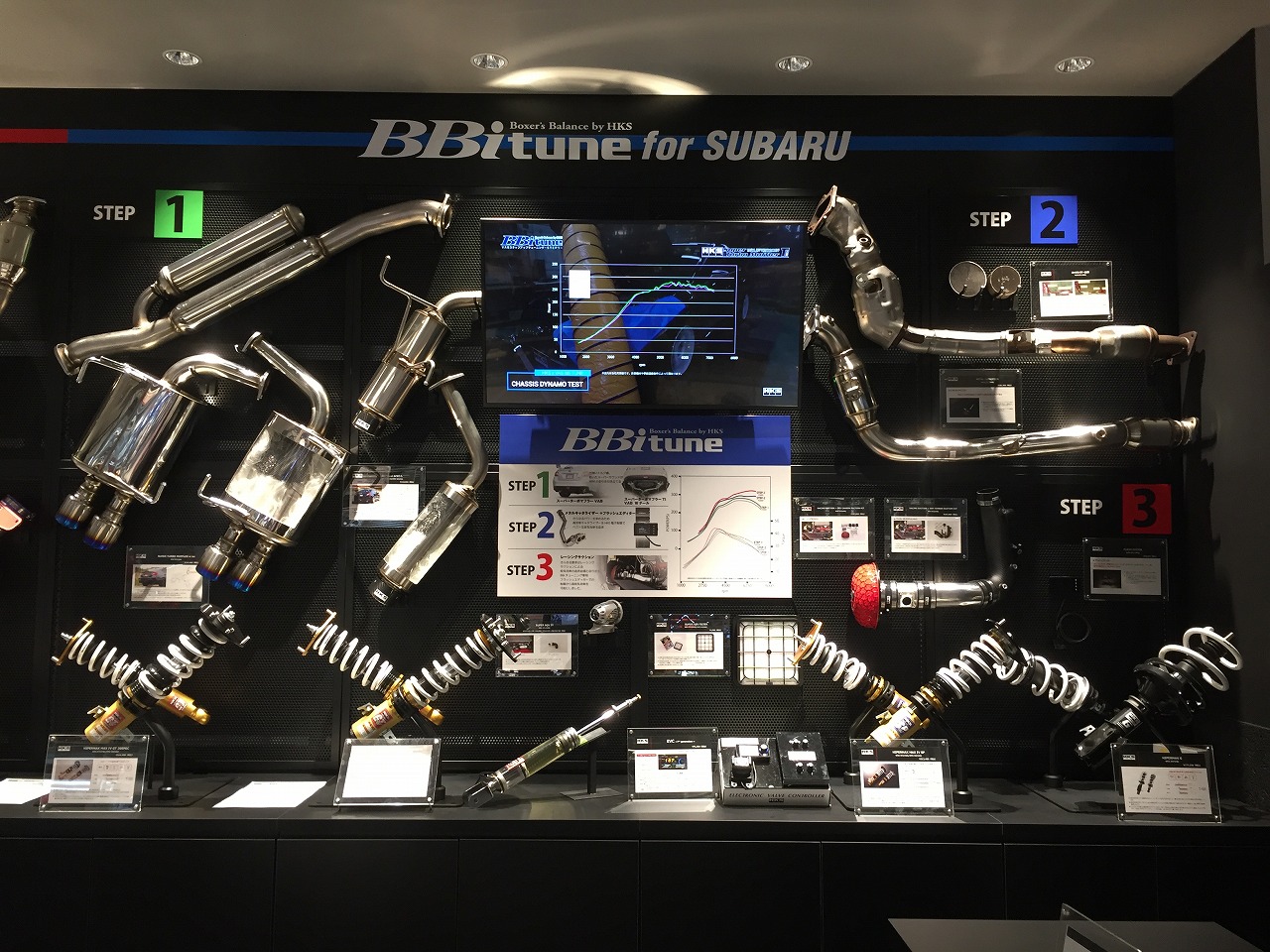 HKSとオートバックスとのコラボ企画である「BBi tune」の主力商品を展示しているコーナー。