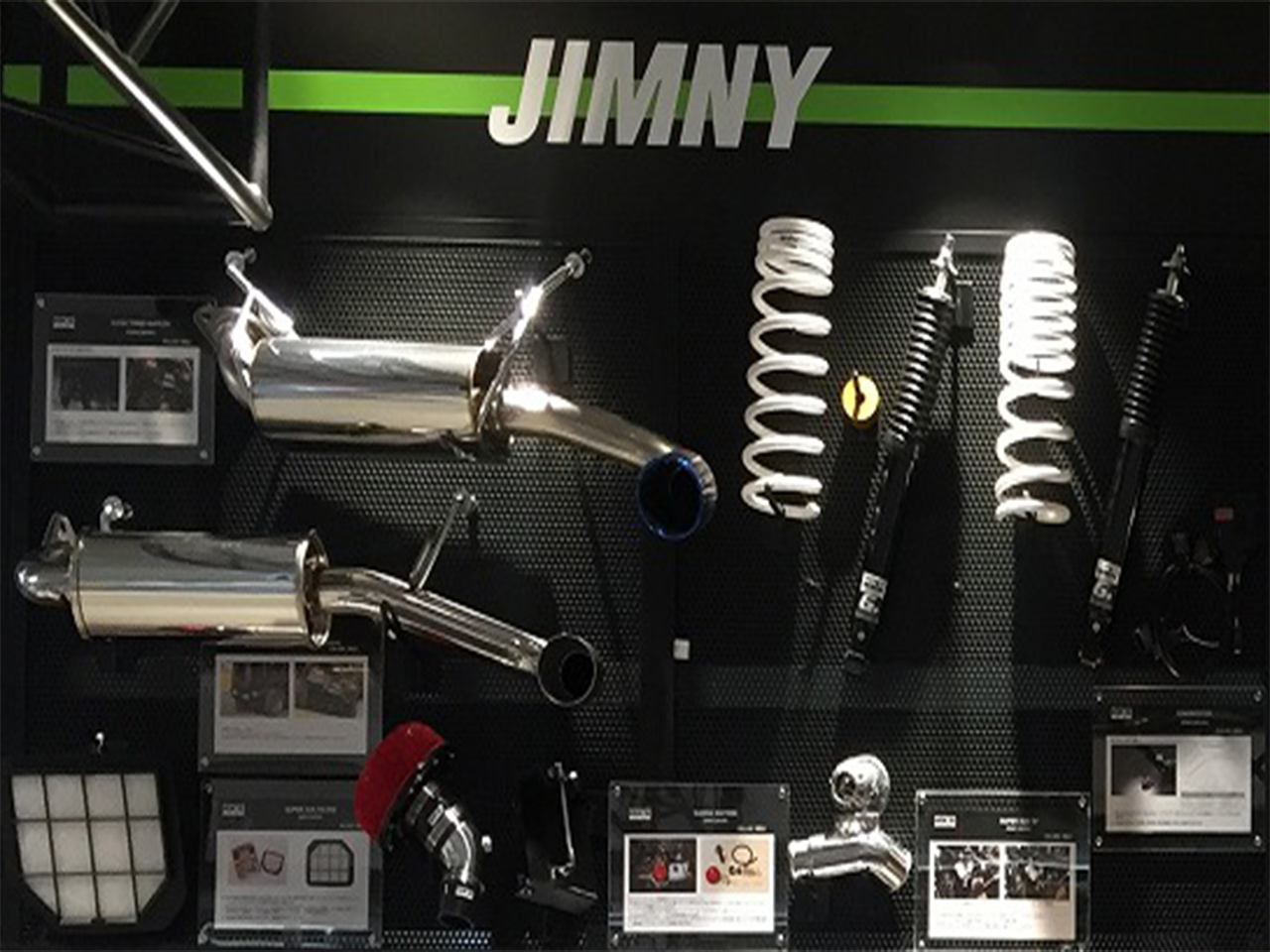 ここでは通常では見るこのとできない、人気マフラーや車高調の内部構造を確認できるように、カットモデルも用意してあります。